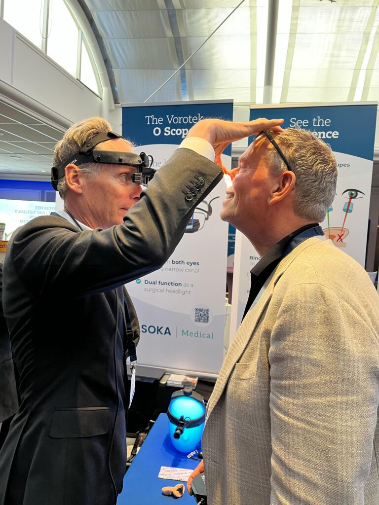 De Vorotek O Scope is heel goed te gebruiken als standaard voorhoofdslamp voor een KNO-arts, als je het microscoop gedeelte naar boven opklapt. Zo kun je het standaard neusonderzoek doen. Als je meer vergroting nodig hebt om bv. verdachte plekjes in de mond/ keel te bestuderen klap je het microscoop gedeelte naar beneden.