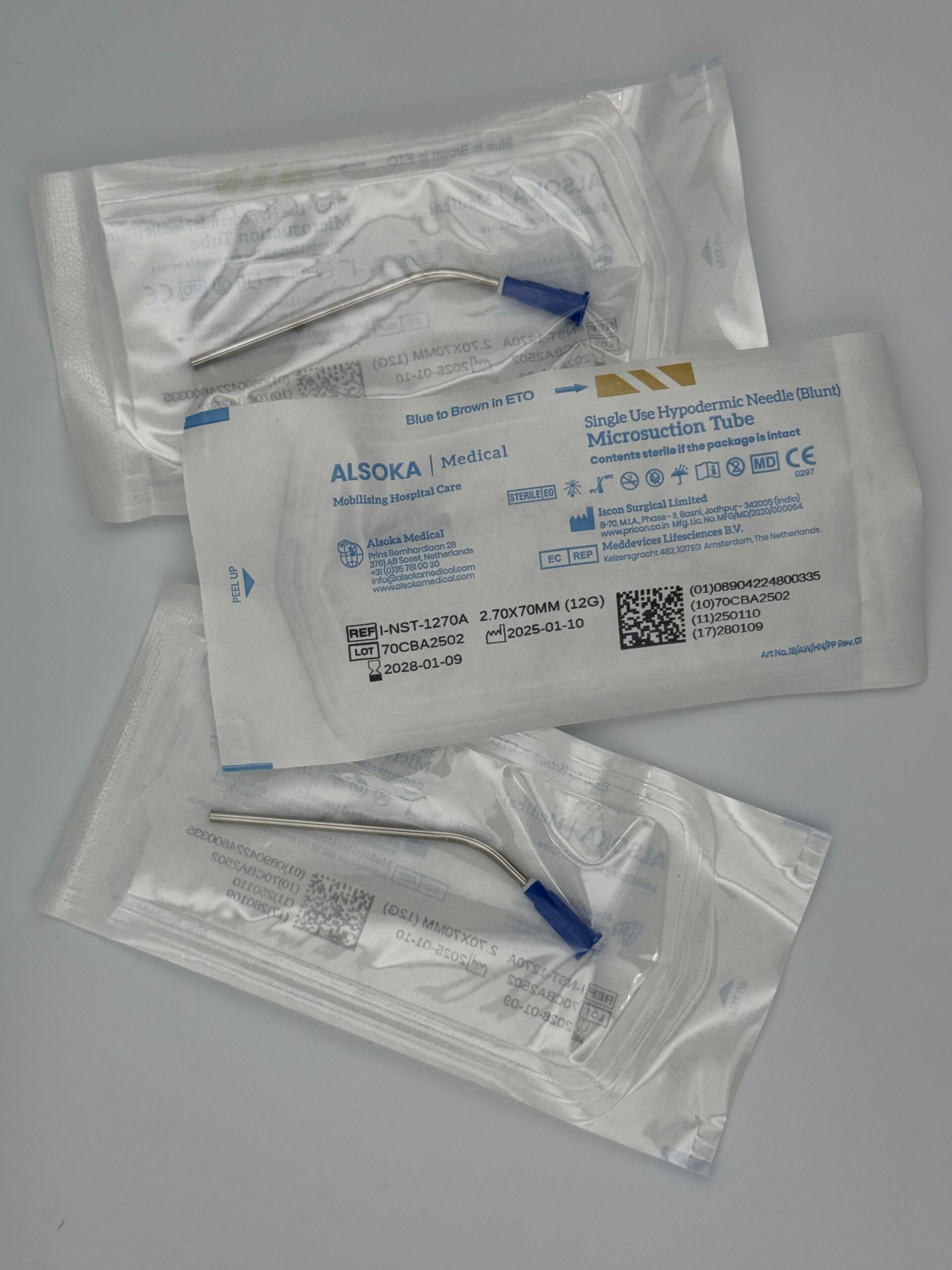 Sterile ear suction tube for single use when sucking out earwax from ears with microsuction.